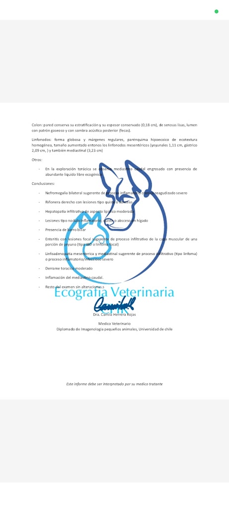 Le fui hacer una ecografía [$54000] a mi perrita, en la receta salía prolapso vaginal, lo principal era verle el útero y ovarios. Tuve que yo comunicarme para que me enviaran el informe, el día que finalizaba el plazo de entrega. Se lo llevé al médico tratante y me diji que en el informe no salió la descripción del útero y los ovarios. Llamé para que lo incluyeran, me dijeron "la ecografista dijo que no se veían los ovarios", eso es falso porque cuando se la hizo me fue relatando lo que veía. Lo que me dijo ella es lo único que pude informarle al médico tratante. Fui por una eco para algo en específico y resulta que no lo hicieron. Pésima atención por WhatsApp. No volveré nunca más ahí. Además que no es barato el examen. Pésimo.